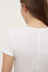 Designed for a slim fit, this tee is crafted from a stretchy cotton fabrication and features a ribbed design with cap sleeves and a centre-back seam detail.