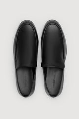The Kennedy Leather Loafer in black is a rounded toe, minimal loafer, crafted from 100% leather with piping detail.