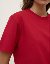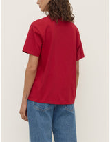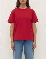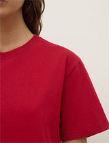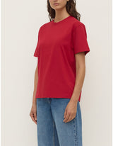 The Womens Organic Base Tee in mulberry is a wardrobe essential made from 100% organic cotton jersey that holds its shape.