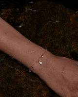 Our 18k Gold Vermeil Ocean Mist Bracelet is inspired by the shimmering sea foam that forms as the tide embraces the shoreline. Featuring pavé set sparkling cubic zirconias and freshwater pearls, this design captures the droplets and mist that disperses as waves crash, reflecting the soft beauty of the ocean.