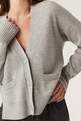 The Cashwool V Cardigan is a regular fit, medium-weight knit featuring a V-neckline with a front button placket. Designed with a dropped shoulder and front pockets, it is finished with side splits at the hem and rib trim at the cuffs and hem.