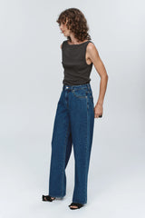 A wide leg jean that sits close to the waist and hips then subtly flares down the thigh to the ankle. Crafted in 100% organic rigid denim and finished with a zip and fly closure. These jeans feature a 5-pocket detail and a mid-rise waistband.
