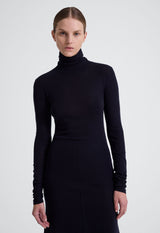 Elevate any look with this classic turtle neck sweater. Crafted from a fine merino wool, this piece is as luxurious as it is effortless. Featuring a slim fit shape, fitted roll neck and full length sleeves this sweater is timeless with a modern sensibility.