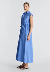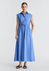 Crisp, clean, and effortlessly put-together. Made from structured cotton poplin, this shirt dress features a flattering extended cap sleeve, feature button closure contrasting with a narrowing drawstring waist for a classic, customizable fit. A modern staple with everyday ease.