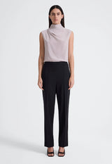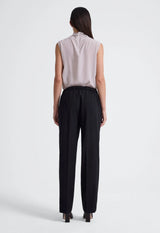 An update to the signature gio pant. This trouser is crafted from Italian wool that is light enough in weight to wear all year round. Elasticated for comfort, with a subtle pintuck detail down the centre front and back leg . Fashioned with discrete side pockets and minimal detailing, this piece can be