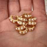 These stunning best-selling earrings comprise 5 milky white cabochon crystal pearls encrusted in an 18k gold plated sterling silver hoop. An elegant everyday extremely light weight huggie that can be stacked with other huggies, hoops and studs.