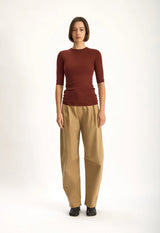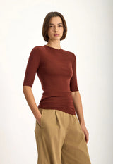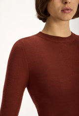 The Riddle Sweater is a lightweight, fine gauge knit in 100% ultrafine Australian Merino wool and hard-working staple that pairs effortlessly with almost anything in your winter wardrobe. It has a fitted body, high neckline, and 3/4 sleeves, with subtle ribbed detailing the neck for clean, refined lines. Designed as a versatile layering piece or worn alone, this knit combines softness, warmth, and understated winter elegance.