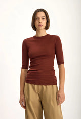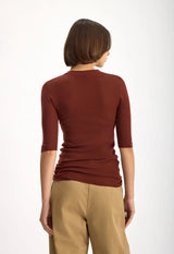 - High neckline with ribbed detail, 3/4 length sleeves