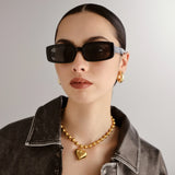 Designed with narrow proportions and wide fit for all face sizes, our DYNAMITE rectangular frame sunglasses are a wardrobe staple for both guys and girls. Featuring a classic noughties-inspired look, this unisex sunglass features discreet Le Specs metal stud detailing on both temples.