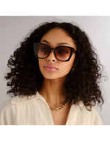 • Finished in a tort frame with brown grad lenses.