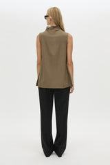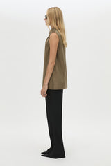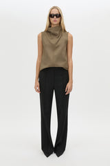 CAMILLA AND MARC Cassie high-waisted slim fit tailored pant in black. Angled pockets, front leg pintucks, back leg permanent press crease, blind hem.