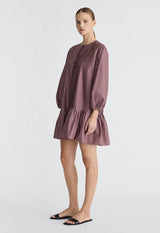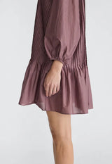 Feminine and effortless, this cotton mini dress features billowed sleeves and a softly fluted hem for graceful movement. Delicate pintuck detailing through the front adds subtle texture and refinement, while the breathable cotton fabric keeps it light and comfortable. A versatile piece that transitions seamlessly from day to evening with ease.