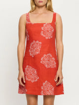 Indira is intricate white shell motifs on a bold red base. The Indira Mini Dress is a fitted silhouette featuring a square neckline and adjustable ties across the upper back for a personalised fit. Designed with clean lines and considered detailing, it brings refined ease to warm-weather dressing. Style with sandals for daytime outings and long lunches.