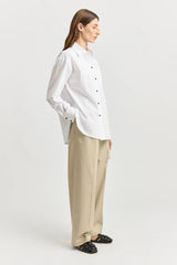 The Relaxed Cotton Shirt is a versatile button-down cut in a crisp Cotton Poplin. Finished with a small chest pocket and curved hemline.