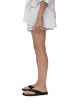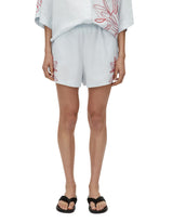 CAMILLA AND MARC Eviva Short in Ice Blue. This Linen Blend short with beaded chainstitch embroidery down outer leg an elasticated waistband for adjustable fit, with inseam side pockets and a blind hem. CAMILLA AND MARC in-house exclusive embroidery and artwork.