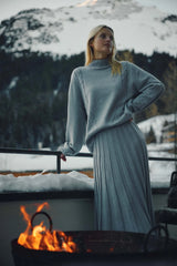 The Franzi Merino Skirt is a regular fit, mid-length style made from 100% merino wool in a medium-weight knit. Designed with an A-line silhouette, it features a pleated engineered rib knit and an elasticated waistband for a comfortable fit.