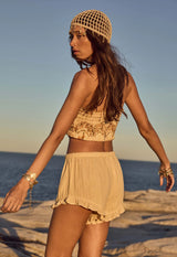 The Barefoot Short in Sand is your ticket to carefree, sun-kissed days. Made from 100% organic cotton, this playful piece features an elastic waist and adjustable tie for effortless comfort, while charming leg frills add movement and personality. Perfect for beach escapes or lazy afternoons, it's the ultimate feel-good essential that looks as good as it feels.