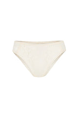 Get lost in the Vintage Cream Lux Lisbon Lace Brief. The custom Spell Lace and lace trim on the waist and leg exude an effortless elegance while the recycled polyamide fabric offers both style and sustainability. Perfect for a cheeky touch of bohemian flair.