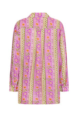 The Goldie Shirt in Desert Rose is an effortless blend of vintage charm and modern ease. Crafted from soft LENZING™ ECOVERO™ Viscose, this relaxed silhouette features an allover print, a classic shirt collar, and a functional button placket with contrast buttons for a hint of intrigue. A chest pocket and buttoned cuffs add timeless details, while subtle hem splits create a flattering drape. Style it open over swim, tucked into denim, or paired with the Goldie Strappy Maxi Dress for a bold print-on-print moment. We can’t wait to see how you wear this beauty!