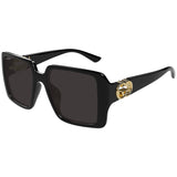 Elevate your style with a touch of luxury in the Gucci GG1692SA sunglasses. This daring square silhouette offers a slightly oversized fit and is bound to make a fashion statement with every wear. The premium black-injected frame features slender temples adorned with Gucci's signature interlocking motif, delivering unmistakable brand prestige. For high UV protection, the GG1692SA sunglasses are fitted with grey lenses, creating a sharp aesthetic while cutting out the sun's harsh UV rays.