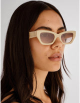 Bold in all the right ways. The Sutton is a wide cat-eye frame with sharp lines and thick temples, balanced by subtly curved metal detailing that adds a refined touch. Designed to frame the face with confidence, this style is equal parts statement and staple.