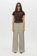 CAMILLA AND MARC Bonnie fitted graphic baby tee in brown. Centre front printed plastisol contrast artwork. Ribbed neckline, turned hem.