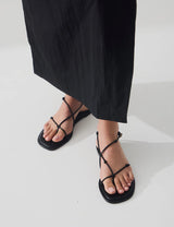 The Sara Sandal is a fashion forward design offering a new silhouette this season. Featuring delicate hand knotted detailing on each strap. Tiny straps weave around the foot creating a modern gladiator sandal silhouette. A stand out sandal designed for summer styling.
